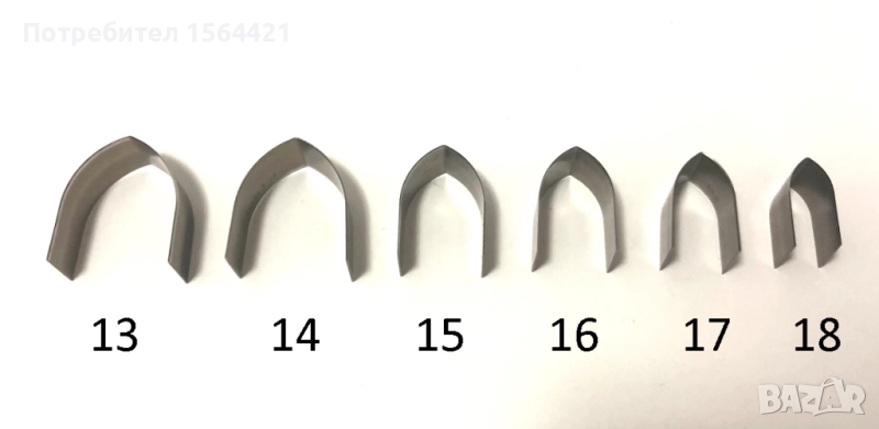 18. дължина: 3,2 см; широчина в долната част: 1,5 см
