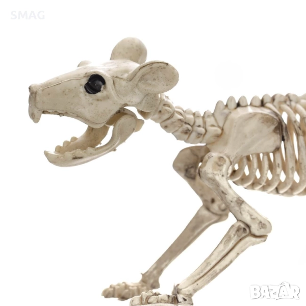 Създайте страховита Halloween / Хелоуин атмосфера с този реалистичен скелет на мишка! Изработен от качествена пластмаса, той е детайлен и перфектен за декорация на дома, градината или парти пространство. Идеален за добавяне на зловещ и реалистичен елемент към вашата Halloween / Хелоуин украса.