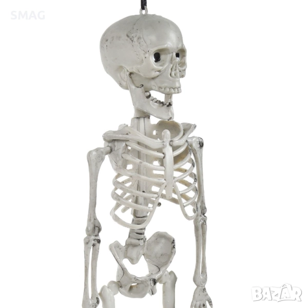 Създайте страховита Halloween / Хелоуин атмосфера с този реалистичен скелет! Изработен от пластмаса, скелетът разполага с подвижна челюст и връв за окачване, което го прави перфектен за декорация на дома, градината или парти пространство. Добавете впечатляващ и зловещ акцент към вашата Halloween / Хелоуин украса.
