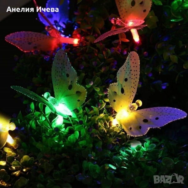 Верига от LED лампички за градината с пеперуди, 12 лампи .