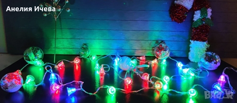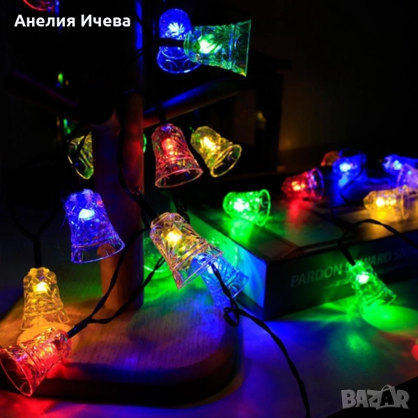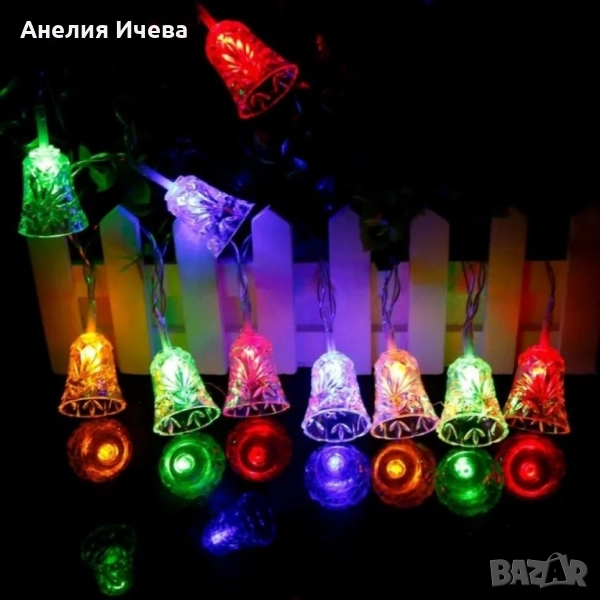 Многоцветни коледни LED лампички с камбанки - Многоцветни, дължина - 5м ,28бр лампички. → Обява 52009007