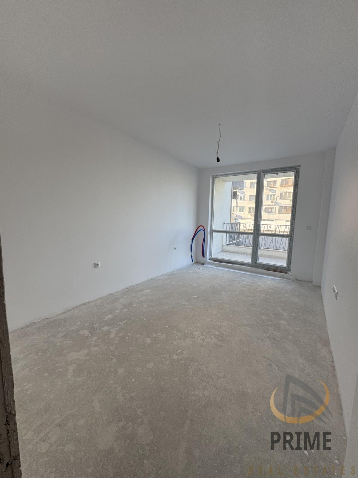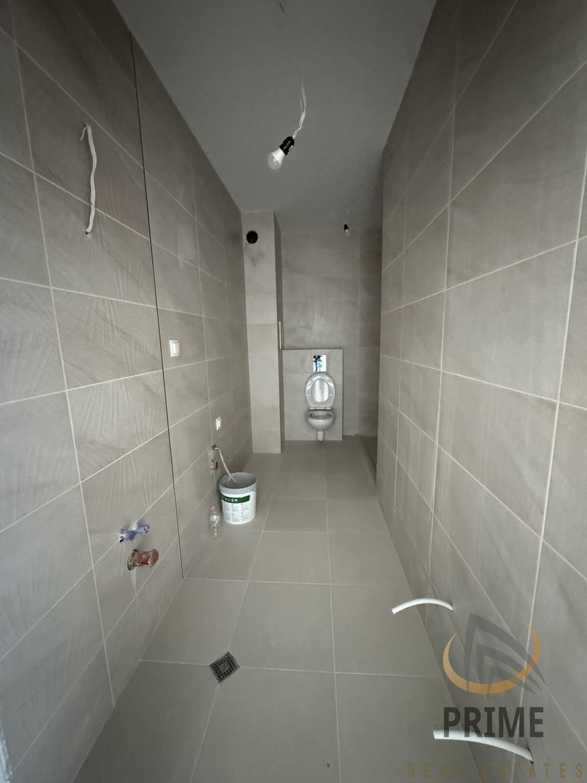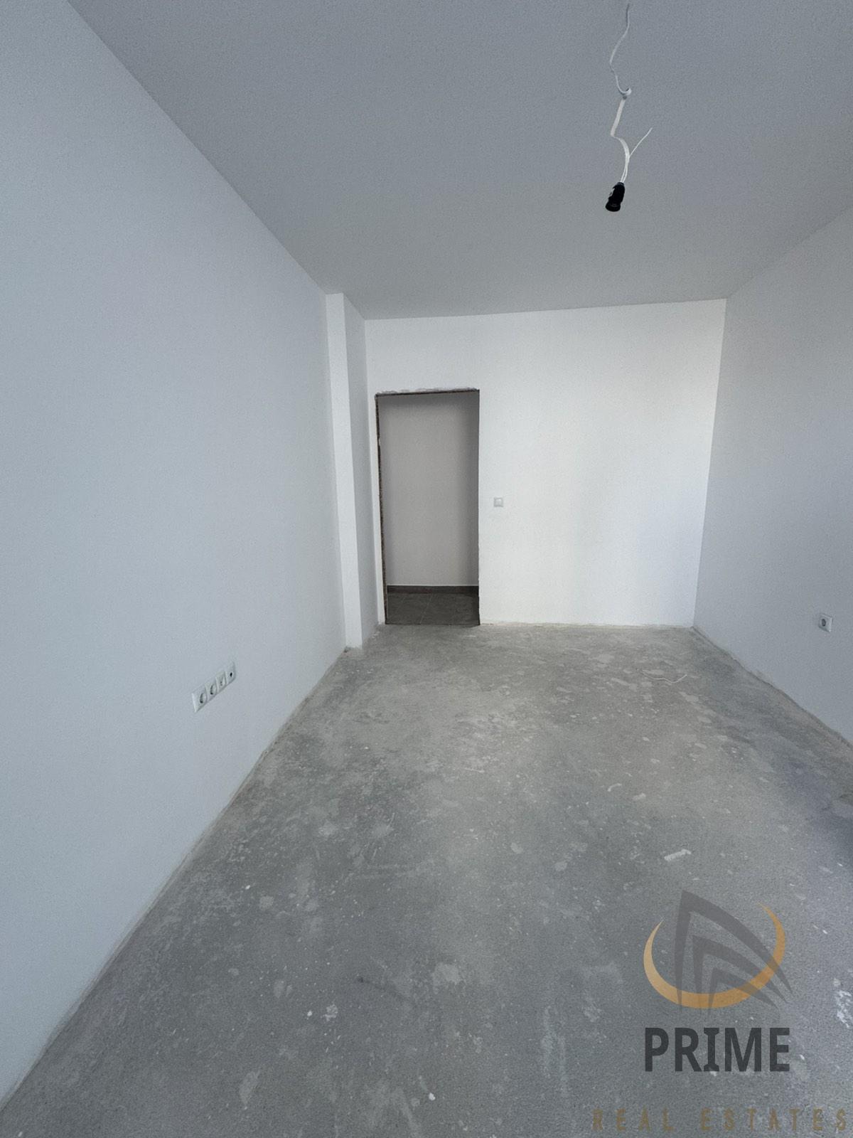 Апартамента се състои от просторен коридор с поставен гранитогрес, хол с трапезария и кухненски бокс, две спални, просторна баня с тоалетна с поставен фаянс, теракот и частична санитария и две тераси. Стените са на латекс.