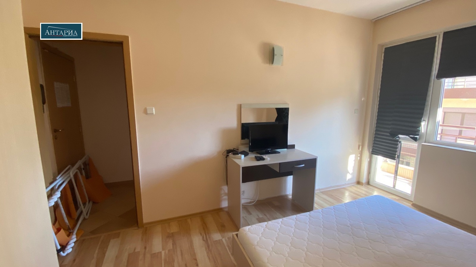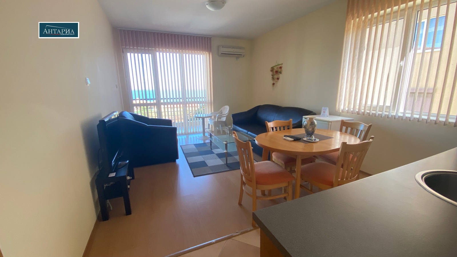 С изглед към морето. Обзаведен двустаен апратмент, близо до Райски залив и к-с Созополис. Разпределението включва коридор, дневна с кухненски бокс, спалня, баня с тоалетна и два балкона. От имота се разкрива хубава морска гледка.