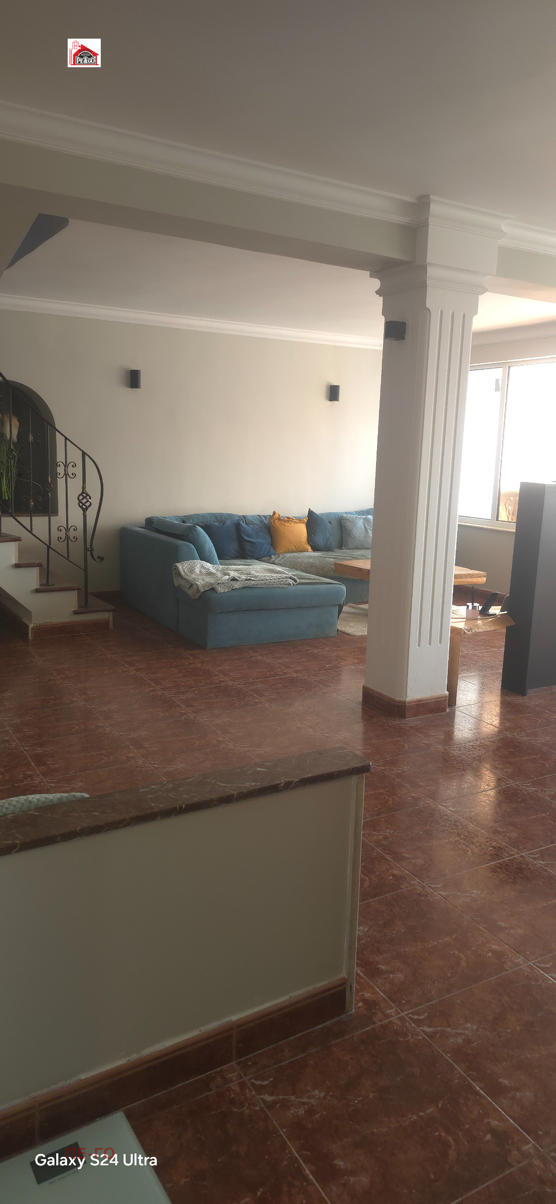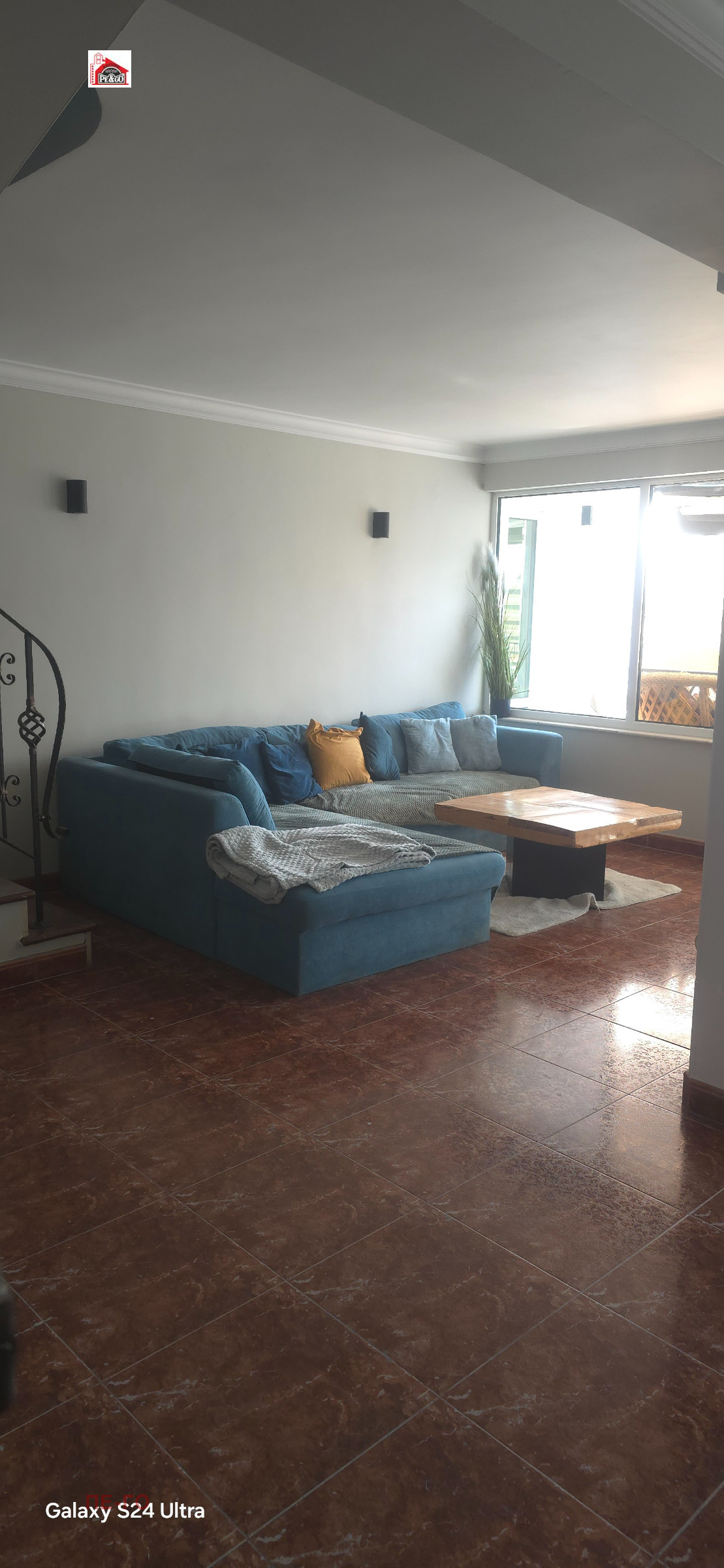 Кантора за недвижими имоти 'Пе-Го' ви предлага прекрасен мезонет разположен на ет.5 и ет.6 в масивна жилищна кооперация в идеалния център на града. Разпределението е следното: на ет. 5 са разположени - кухня, просторен и светъл хол с излаз на голяма тераса, три спални, две бани с тоалетни, тъмно помещение; на ет.6- са разположени- фитнес, една спалня, баня с тоалетна, сауна. Имота се продава с наличното обзавеждане. Състояние на имота: имота е с вътрешна и външна изолация, разполага с подово отопление и парно на ток, което се захранва от трифазен ток. Кооперацията е без асансьор, с добре поддържани общи части. Изложение- юг-север. С възможност да се закупи на Разрочено плащане, както и замяна . Може да се закупи и Гараж с площ от 17,00 кв.м. на цена - 25 000 Евро; За повече информация и огледи на тел. 0899 182500- Костадинова;