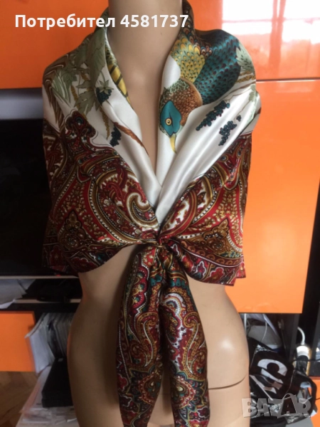 Копринен шал с десен фазани → Обява 52010273