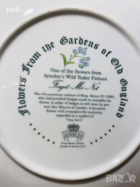 Колекционерска порцеланова чиния Aynsley “Flowers from the Gardens of Old England”Диаметър 21 см . Към нея има и кутия . Цена 16€