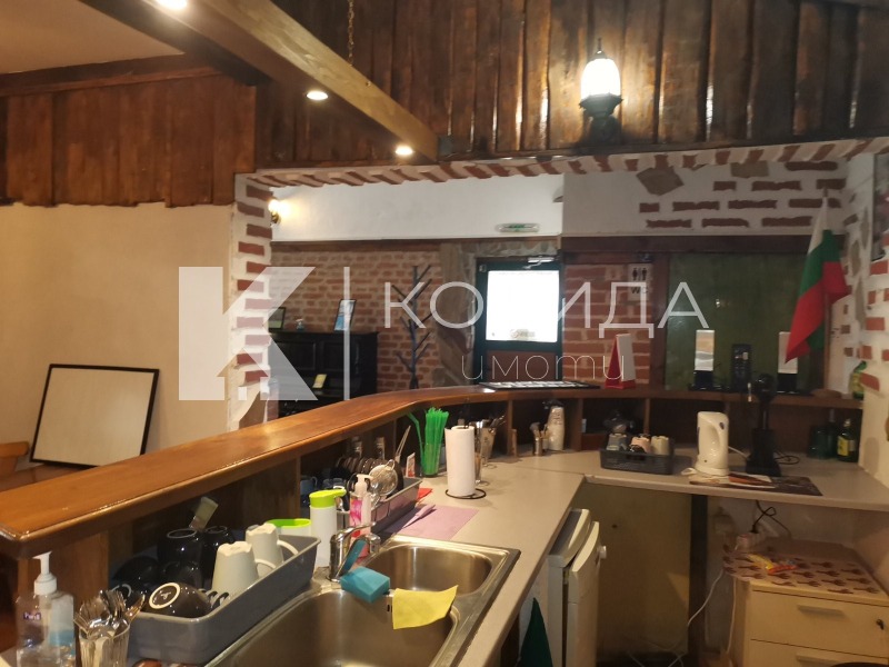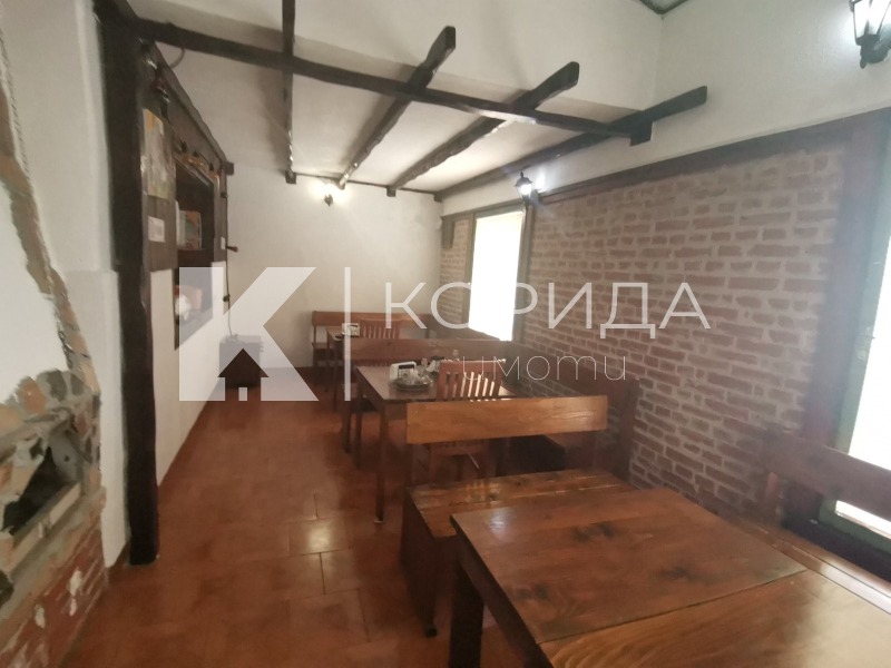 Самостоятелна постройка със застроена площ от 77 кв.м.,заедно с УПИ с площ от 328 кв.м.Постройката е монолитна,статута е' Кафе-аператив'.До сега заведението е работило като кетъринг с кухня.Има оборудвана кухня,търговско помещение и функционираща камина за отопление. Състои от зала,санитарен възел,склад и кухня.Разполага с 2 входа.Състоянието е добро.Парцела е ограден и в него има допълнителна постройка-стопанска сграда.Мястото е комуникативно,в близост има спирка на градски транспорт.Заведението е с архитектурен проект,разрешение за строеж и разрешение за ползване.Работим с всички клиенти и коректни колеги на пазара.За огледи 0888682203