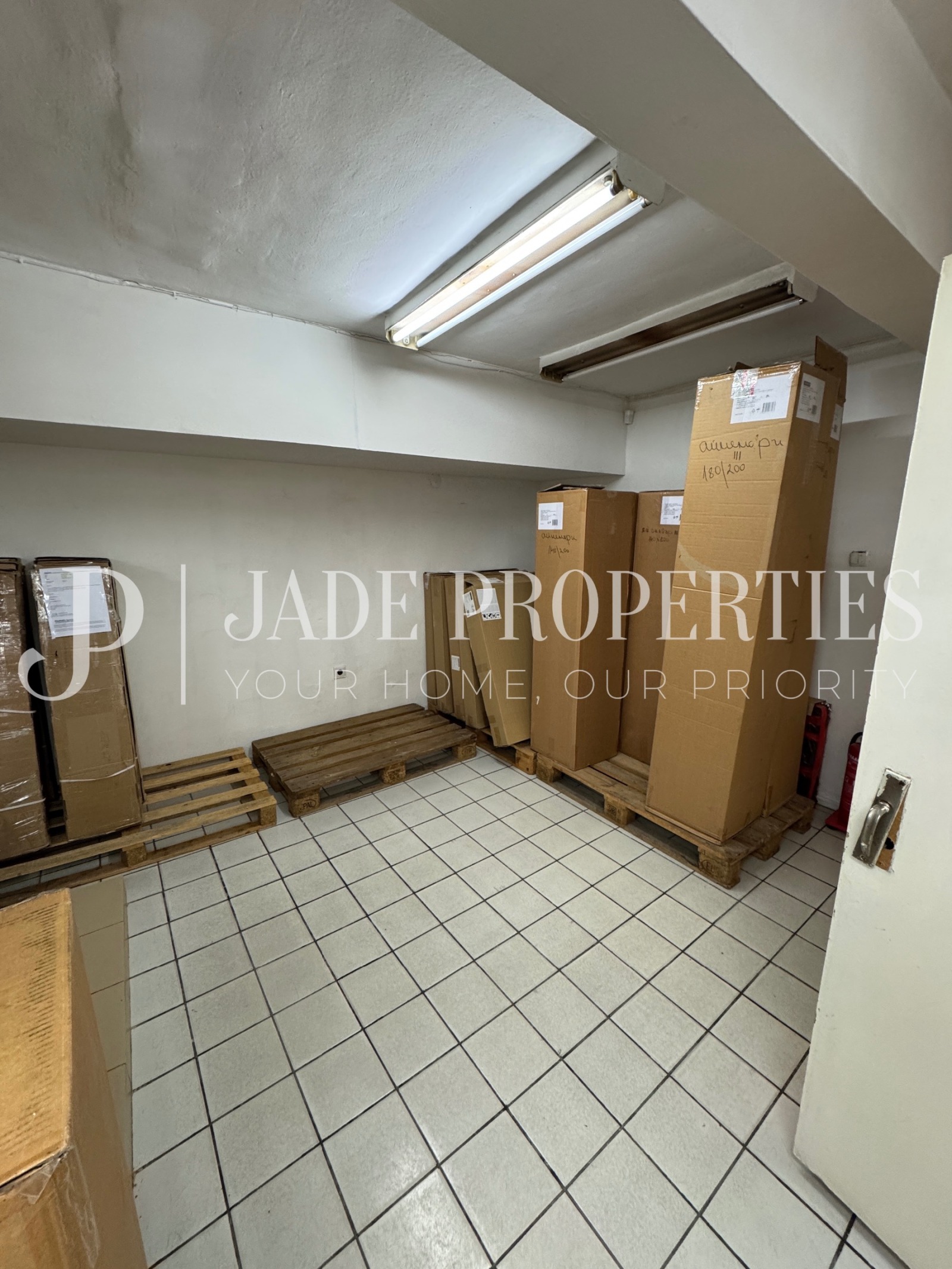 Разпределение - търговска част с площ от 102 кв.м, складово помещение на партерен етаж - 5 кв.м, склад на ниво сутерен със санитарен възел - 40 кв.м