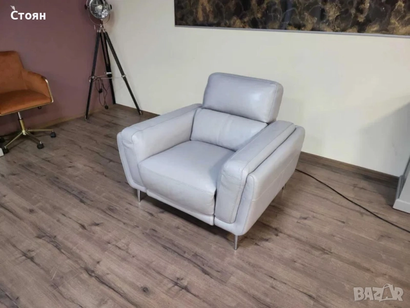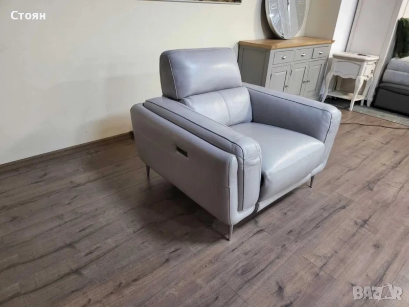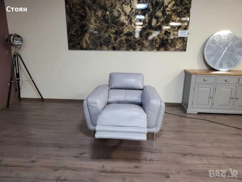 Сив кожен фотьойл с електрически релаксиращ механизъм