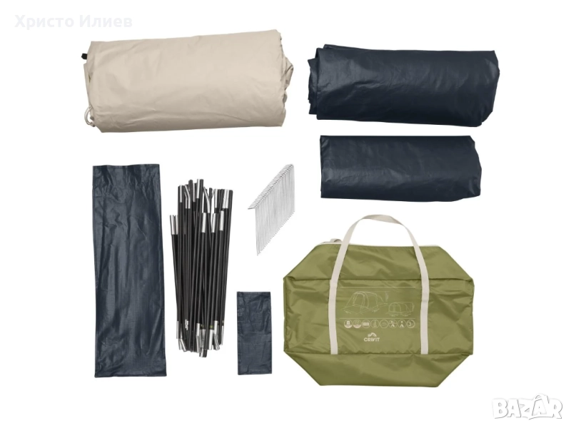 външна част на палатката: 100% полиестер с полиуретаново покритие