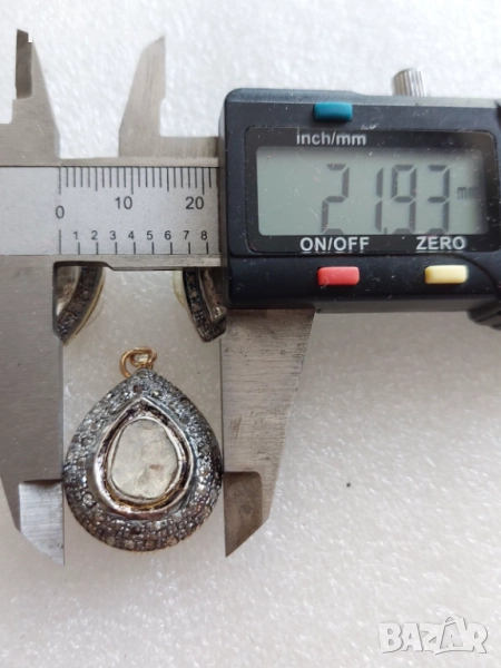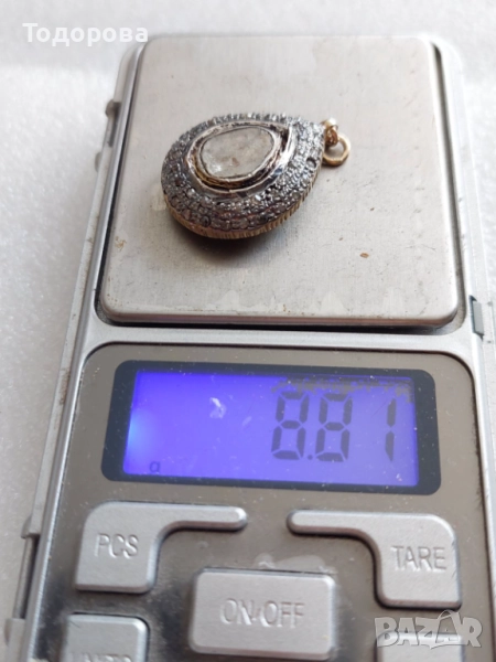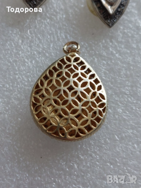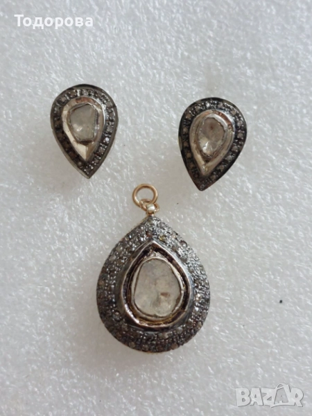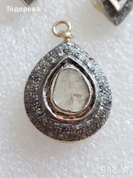 Сребро,злато-комплект обеци и медальон с огромни стари диамати → Обява 52010737