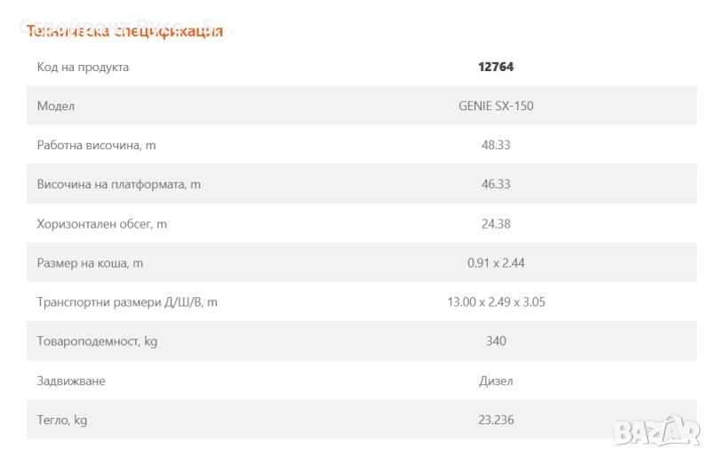 Дизелова телескопична вишка под наем, подходяща за работа на голяма височина и в тежки терени. Със своята изключителна стабилност и висока проходимост, благодарение на системата 4×4, тя осигурява безопасен и ефективен достъп до труднодостъпни места. Подходяща е за монтажни дейности, поддръжка на съоръжения, фасадни работи, индустриални обекти и строителни площадки
