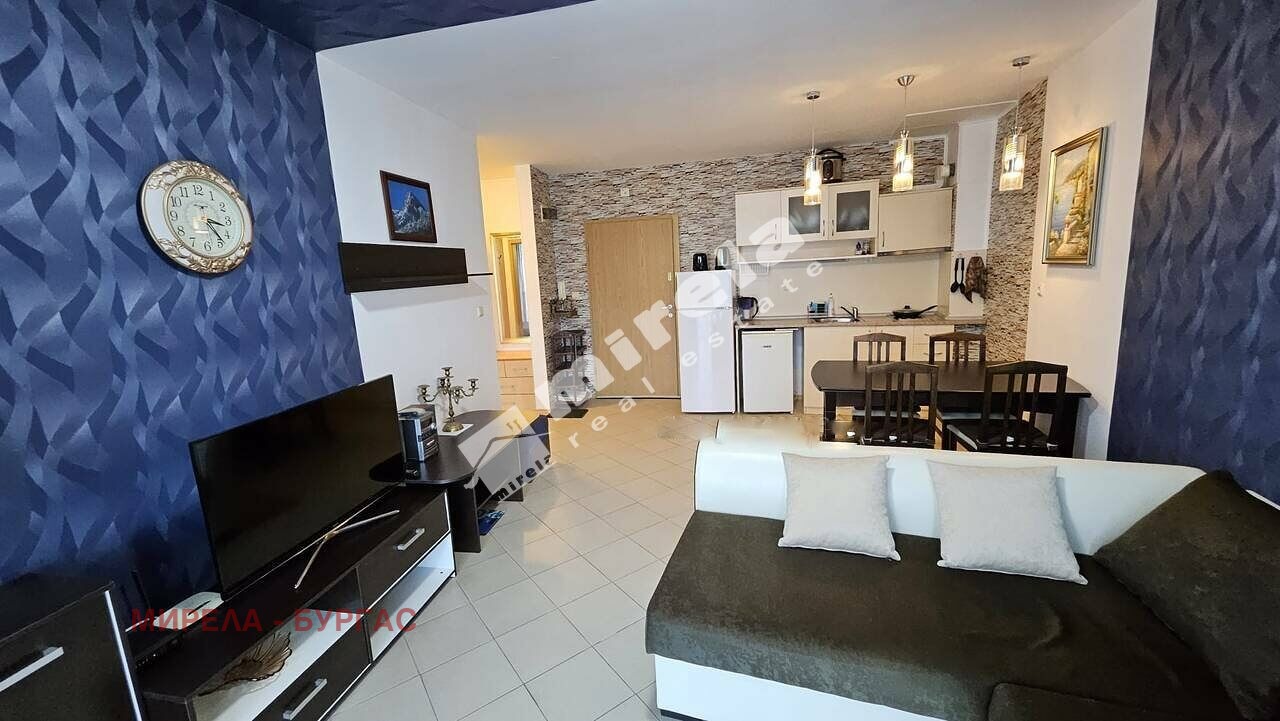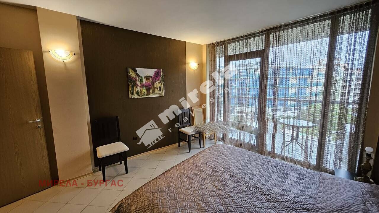 Имотът има жилищен статут; Има надземно паркомясто; Сградата има асансьор; Продава се с обзавеждане, което подлежи на уточнение; Има физическа охрана; ЕТАП НА СТРОИТЕЛСТВО: разрешение за ползване (Акт 16); ОТОПЛЕНИЕ: климатик; Има 1 балкон/тераса; Ремонтиран; Има такса поддръжка; Непреходен; Целогодишно ползване; ВИД СТРОИТЕЛСТВО: тухла; ГОДИНА НА СТРОИТЕЛСТВО: 2010 г.; ИЗЛОЖЕНИЕ: запад, гледка към басейна; СПАЛНИ: 1; БАНИ: 1; ДОГРАМА: PVC