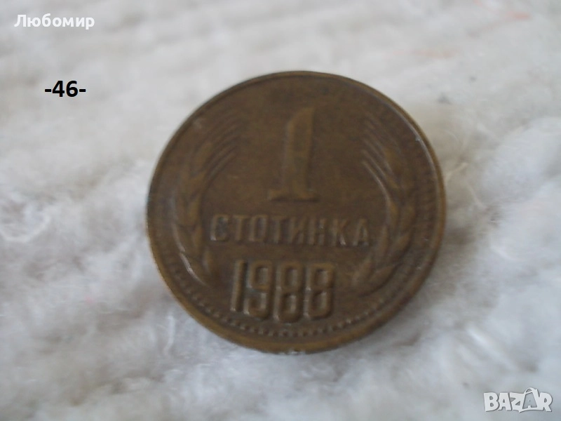 46. Стара монета 1 стотинка 1988 г. - 3 лв.