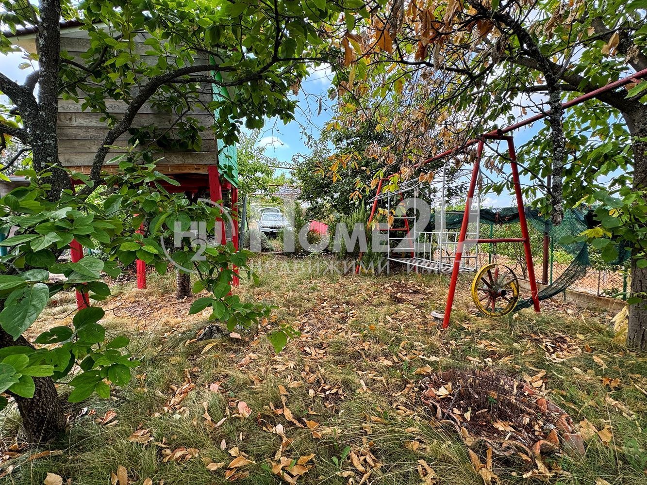 Дворът е облагороден и поддържан с любов засадени са различни овощни дръвчета, лози и цветя, създаващи усещане за хармония и спокойствие. Обособен е детски кът с къща за игри, люлка и