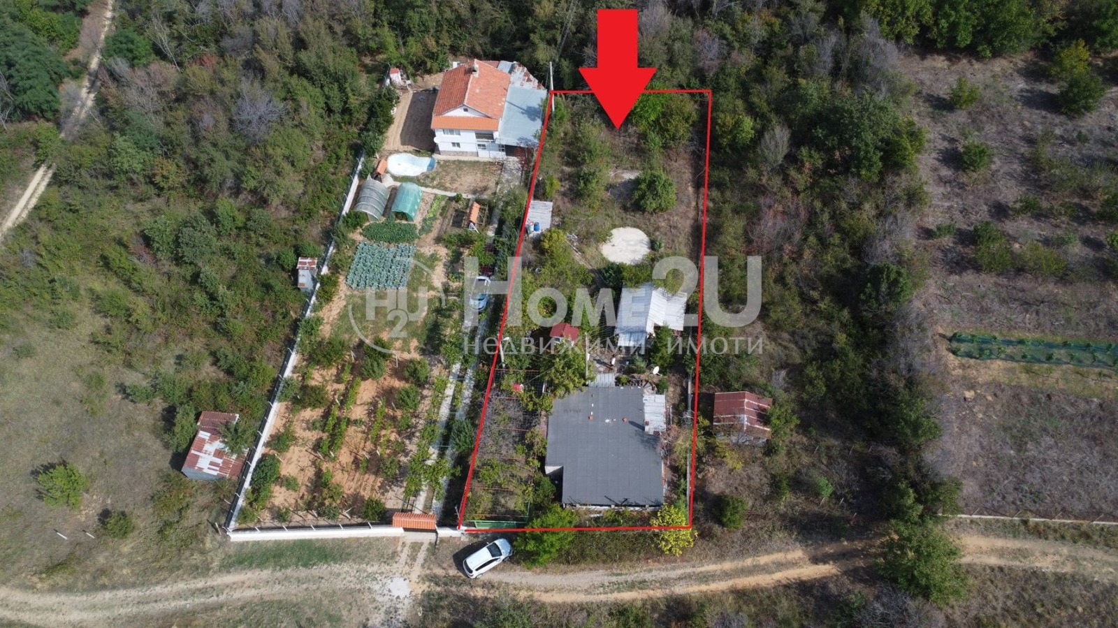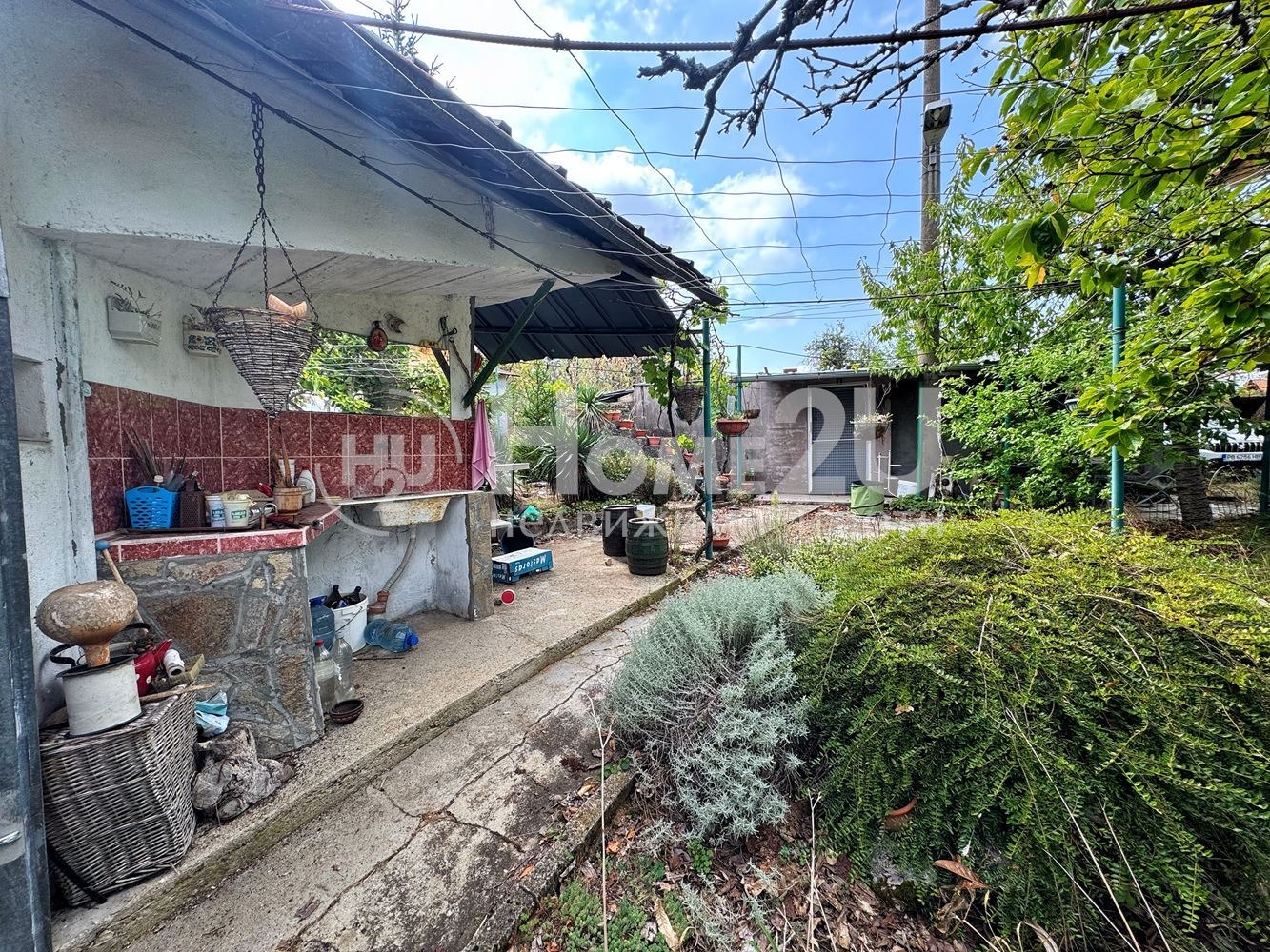пясъчник перфектно място за най-малките. Излята е бетонна площадка за басейн, готова за изграждане на външно съоръжение за летни забавления. В двора ще откриете още лятна баня, външна мивка, складово помещение, сонда за вода и удобно място за паркиране.