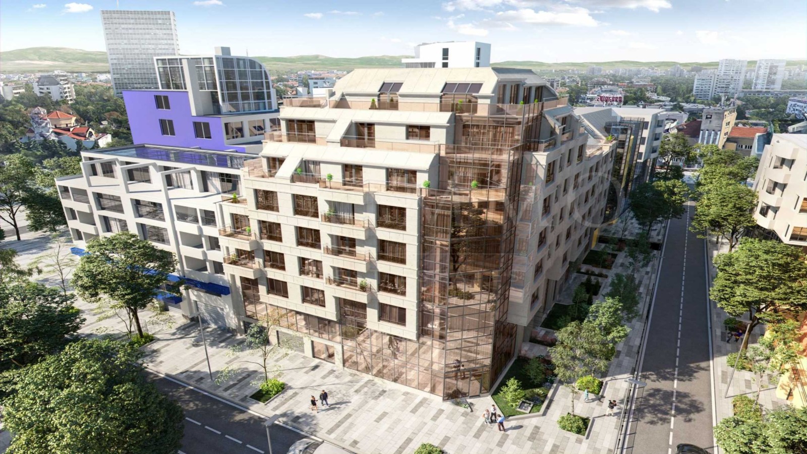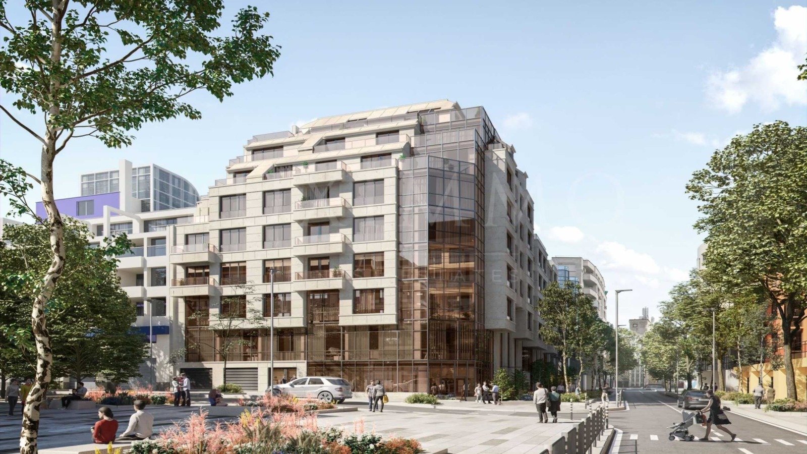 Разпределена на 9 етажа, сградата е със смесено предназначение и е разделена на два входа. На ниво партер са разположени търговски обекти - магазини и ресторант, на 2-ри и 3-ти етаж има налични офиси, а от 4-ти до 9-ти етаж е жилищната част. Има избор от двустайни, тристайни и четиристайни апартаменти с функционални и просторни помещения, а паркирането е решено с паркоместа и гаражи на две подземни нива.