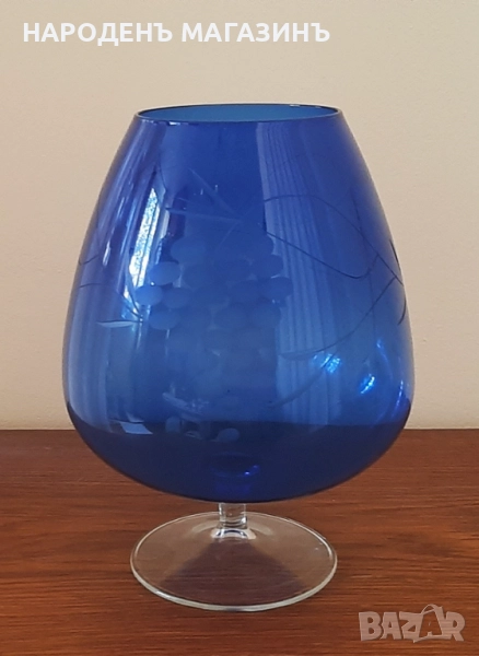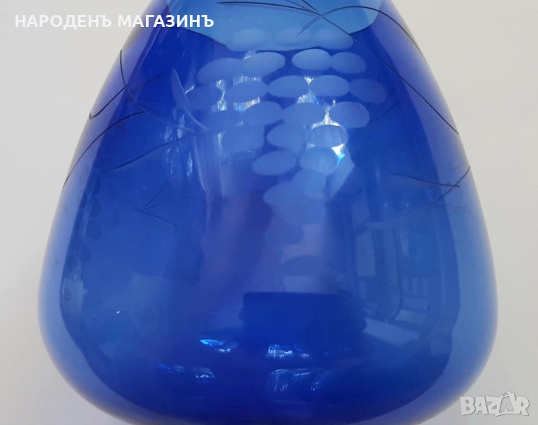 Ваза от синьо стъкло с гравирани елементи