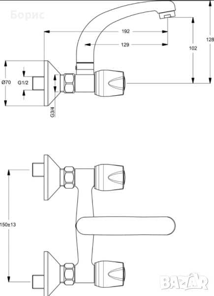-Смесител стенен за умивалник