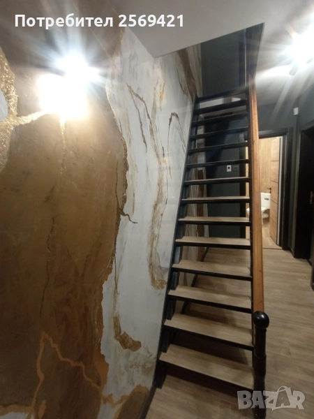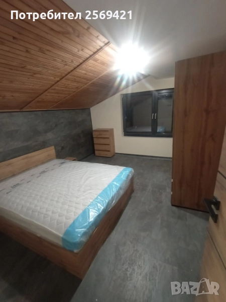 По вътрешно стълбище се достига до мансардния етаж, където ще откриете още две спални, баня с тоалетна и втора тераса.