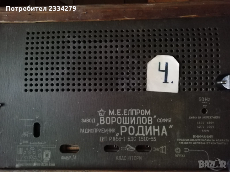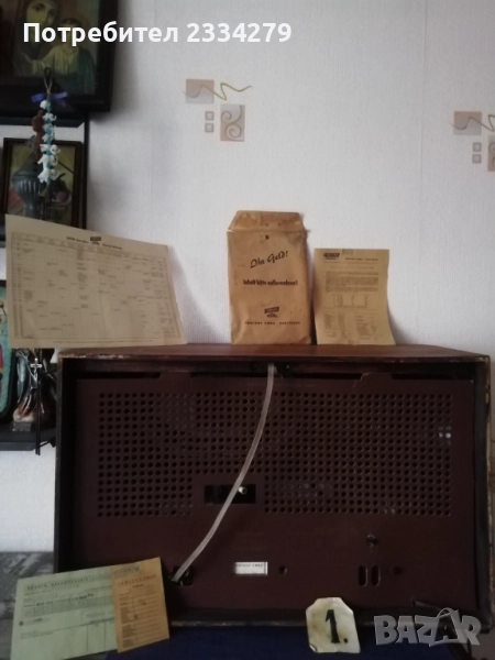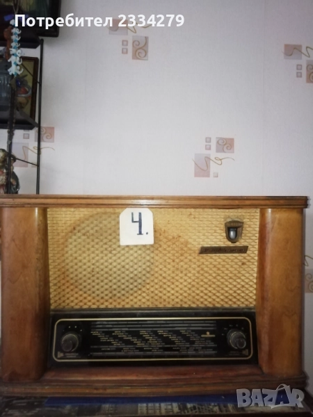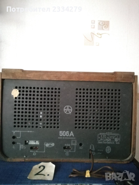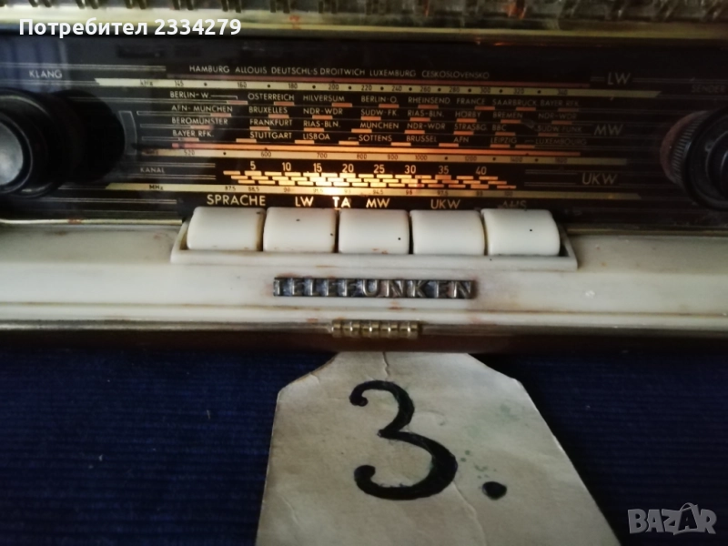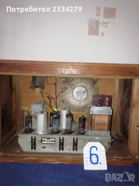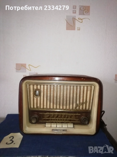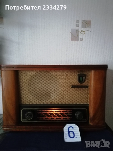 радиоапарати, лампови от различни години и производители. N:1 Тонфънк винтидж радио ,, Zauberjuwel-W346F(1)" старо лампово радио Gm bH, Карлсруе Германия 1956-57година, много добре без липси запазен но с изгорял трансформатор, има и документи, гаранционна карта, сертификат и книжка с опътване схеми, цената като неработещо в това състояние 35.,(при оправа друга цена! ) Може да се ползва като декорация.; N:2 лампов радиоапарат марка ,,TESLA 506A Аrie" made in Czechoslovakia, модел 1953година, има изходи за грамофон и говорители, при влкючване в мрежата с ток започва да шуми, вънкашно дървената кутия и скалата е в много добро състояние, цена 45€.; N:3 ,,TELEFUNKEN-Jubilate 7S", при включване свети и шуми. (НЕ Е НАЛИЧЕН) ; N:4 българско лампово радио ,,РОДИНА" изработено в завод ,, ВОРОШИЛОВ" втора версия,1956год. работи, всичко свети, цена 27€.; N:5 старо немско лампово радио ,,Berrnau / Nauen STERN-RADIO-BERLIN R.F.T., 1975гоина, добре запазено при влкючване се разсветва и шуми, цена 35€.; N:6 българско лампово радио ,,Христо Ботев" 1956год., работи, няма заден капак, ЦЕНА 15€ .