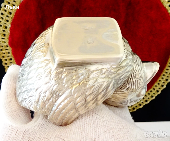 масивен бронз,дебело посребрена с висока проба сребро.Маркирана с инициалите на H.R.W. Fink Germany,основана