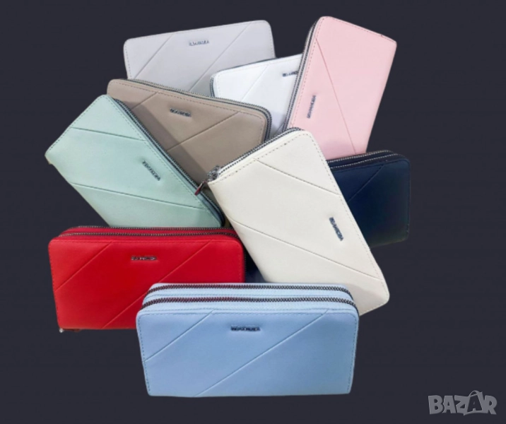 Голям дамски портфейл с размери 19 × 4 × 10 см, изработен от качествен материал, предлагащ елегантен и практичен дизайн. Той има достатъчно отделения за карти, пари и други лични вещи, като осигурява удобство и стил. Портфейлът е наличен в девет различни цвята: бял, кафяв, син, зелен, розов, сив, червен, бежов и черен, което го прави подходящ за всякакви предпочитания и поводи.