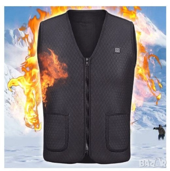 Унисекс електрически термичен елек за зимния период с USB свързаност/Ефективно предпазва от студ през зимните месеци; USB порт за свързване на захранващата банка; 4 режима на подгряване с различен интензитет; Мигащ светлинен индикатор - автоматично отопление; Червена светлина - ръчно нагряване, висока температура; Бяла светлина - средна температура; Синя светлина - ниска температура; Подходящ за пране на температура под 30 градуса; Подходящ за носене и от мъже и от жени; Цвят: черен; Размер: M, L, XL, 2XL, 3XL;
