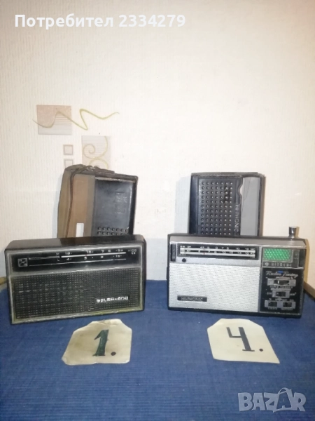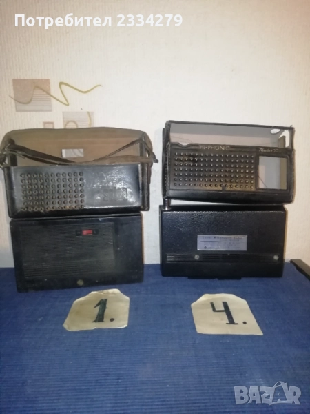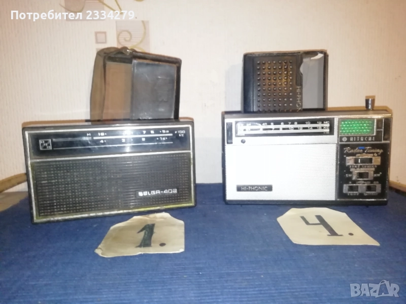 Стари ретро транзистори, различни марки от различни години. N:1 транзистор марка,, Selga" сделано СССР през 70-80години, комплект с кожен калъф, цена 17лв.; N:2 Транзистор ,,SOKOL" USSR, цена 17лв.; N:3 (НЕНАЛИЧЕН) ; N:4 транзистор с кожен ,,HITACHI" HI-PHONIC Radav Tuning, made in Japan, цена 17лв.; N:5 (НЕНАЛИЧЕН)