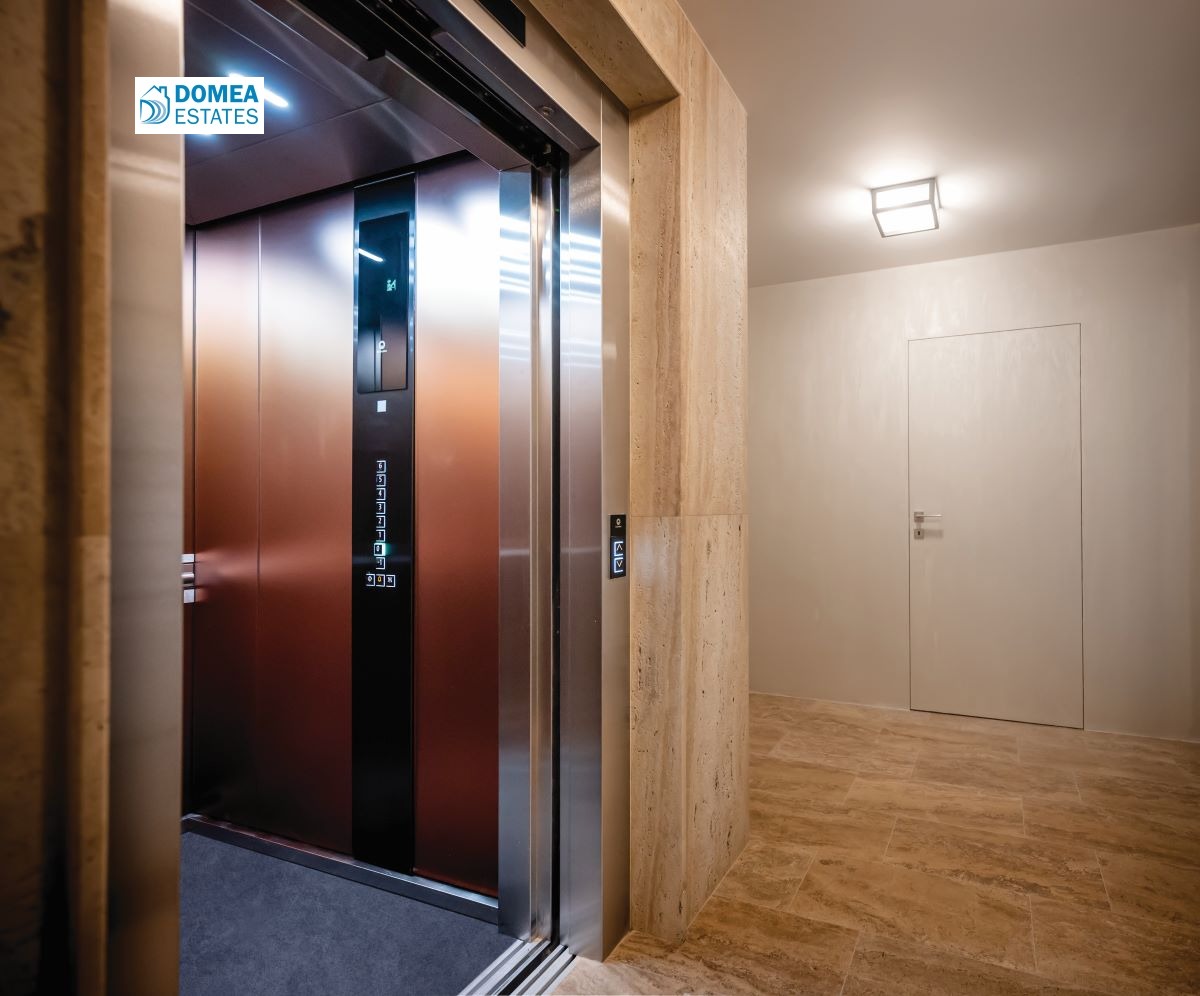Във всеки детайл ще откриеш елегантност: Solid врати с MDF каси, Schindler асансьор с безшумно движение, козирки и декоративни решетки, изработени с внимание към детайла.