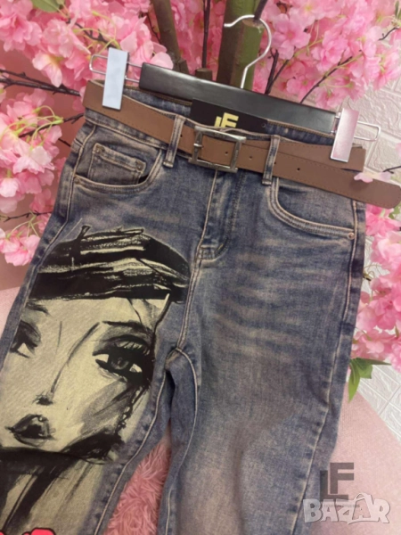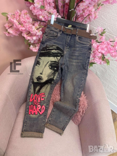 Кройка: Кройката е тип “Mom’s” с висока талия и стесняващи се крачоли, декорирани с любимите ни хенд – мейд рисунки