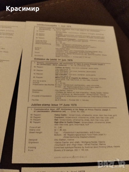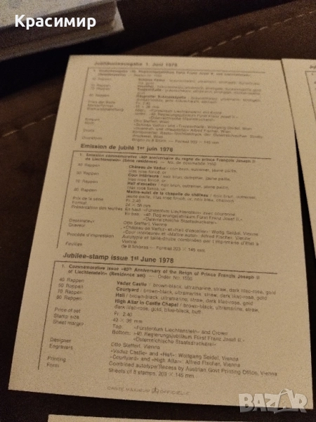 Пощенски картички Лихтенщайн 1978 г → Обява 52013659