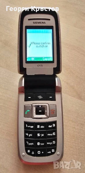 CF75 - за нов панел - телефона се включва и работи идеално, тестван с А1, нямам друга за проба, зарежда си батерията, която е слаба, 1 - 2 разговора, активен и стегнат капак, клавиатура, подсветка, камера, слушалка, микрофон, всичко е ОК, няма БГ меню, по - скоро за смяна на панел, без зарядно.