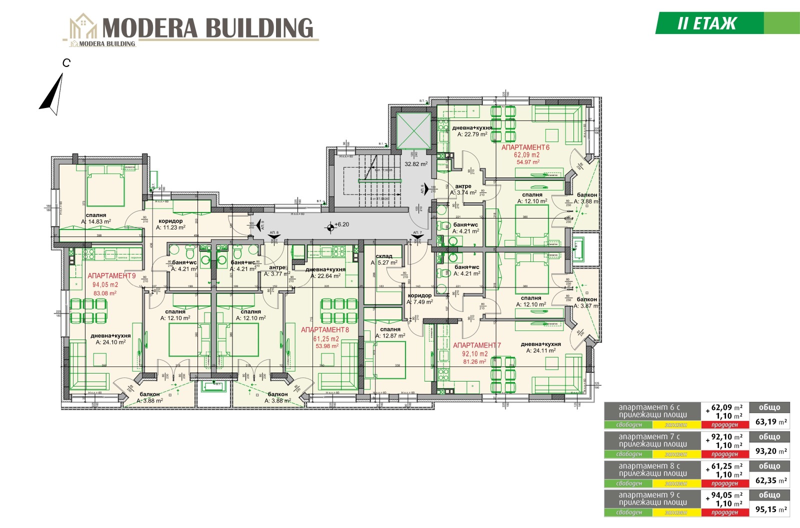 Сградата се намира на ъгъла до терминал ЮГ с изложение ИЗТОК - ЮГ, с иновативна архитектура, висок клас на изпълнение, целящ дългосрочна и безпроблемна експлоатация на всеки имот с ниски енергийни разходи. Едно от предимствата с които се гордеем е топло и шумоизолацията която правим в нашите сгради, а имено топлоизолация по тавани и под на всеки апартамент, както и топло и шумоизолация межди всеки апартамент. Сградата се състои от партерен етаж и девет жилищни етажа с по четири апартамента на етаж, два двустайни и два тристайни. За повече информация и налични свободни имоти, можете да разгледате сайта https://moderabuilding.com