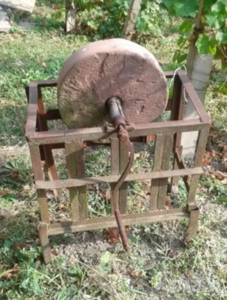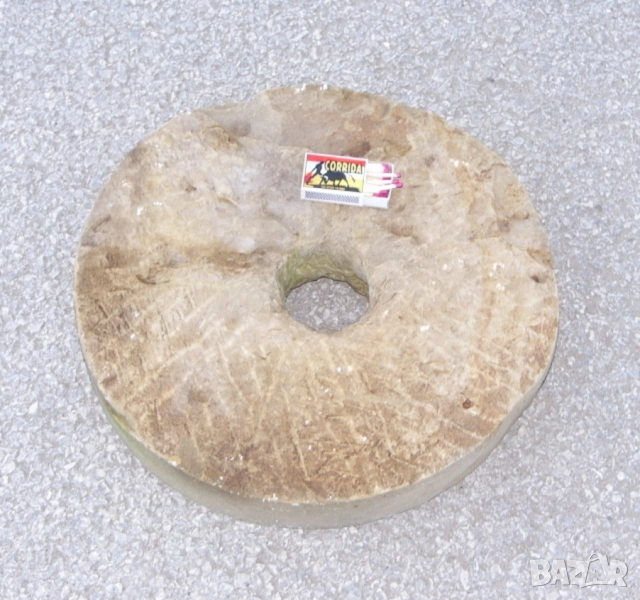 Старинно кръгло каменно точило от естествен дялан камък, изцяло ръчна изработка (не е тип воденичен камък за мелница за зърно - хромел).