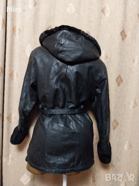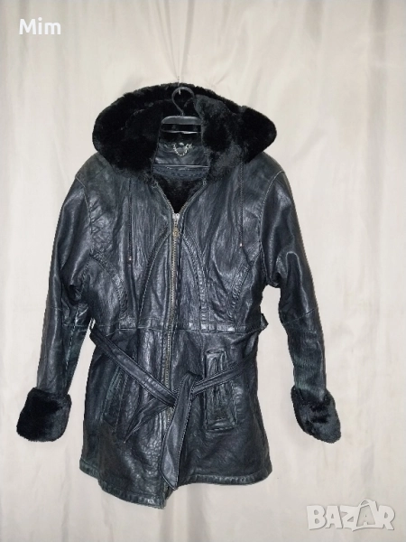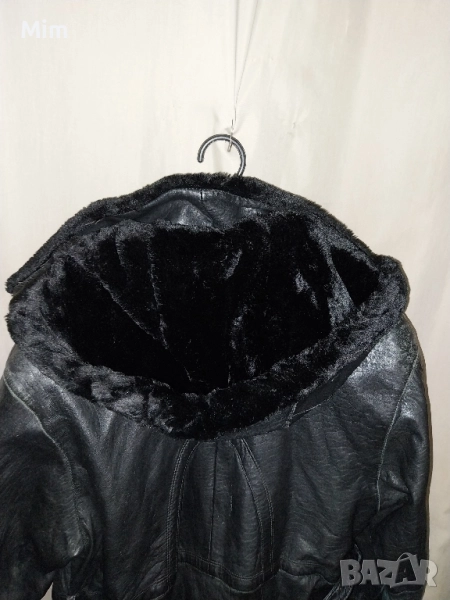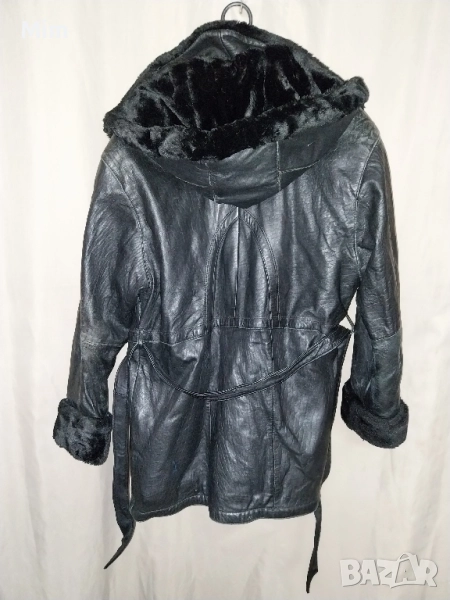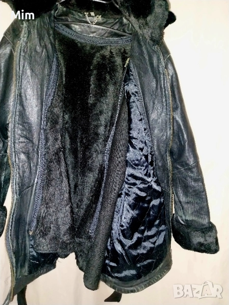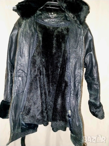 Кожено яке / палто / от естествена кожа със снимаща мека подплата с цип със сатенена подплата, има качулка която може да се маха с цип ,това дава възможност да се ползва както за зимно време така и за пролет /есен на ръкавите и на яката има меки пухчета ,закопчаването е отпред с цип и колан ,с два вътрешни джобове.Гръдна 100 см ,талия 90 см ,ханш 100см, дължина 79 см ,дължина на ръкавите 65 см .Няма забележки.