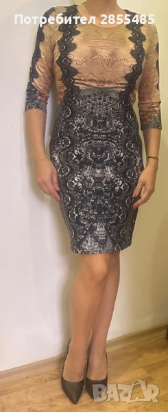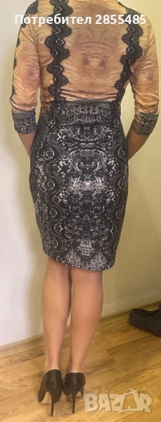 Рокля в нюанси черно и бежово с камъчета → Обява 52015503