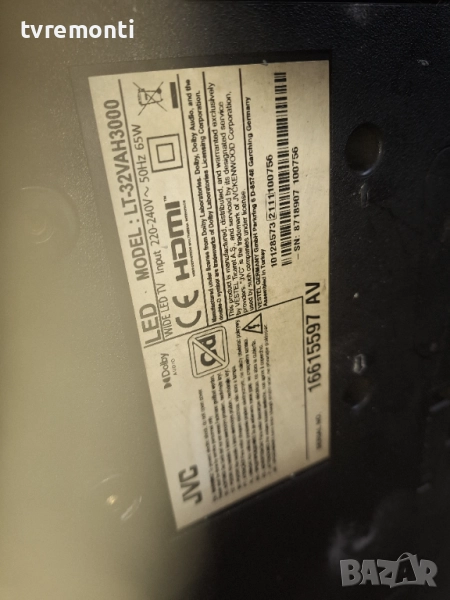 POWER BOARD ,17IPS62 за 32-инчов телевизор JVC Модел LT-32VAH3000, с дисплей VES315WNGL-2D-N52 → Обява 52015568