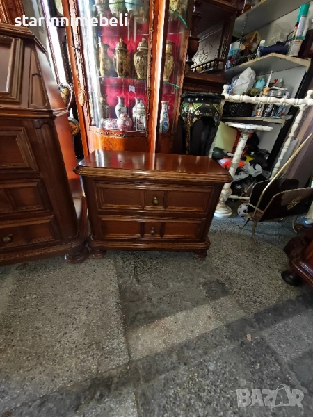 ​Продава се комплект от красив дървен скрин и две съвпадащи нощни шкафчета, идеални за добавяне на класически и функционален чар към вашия дом.