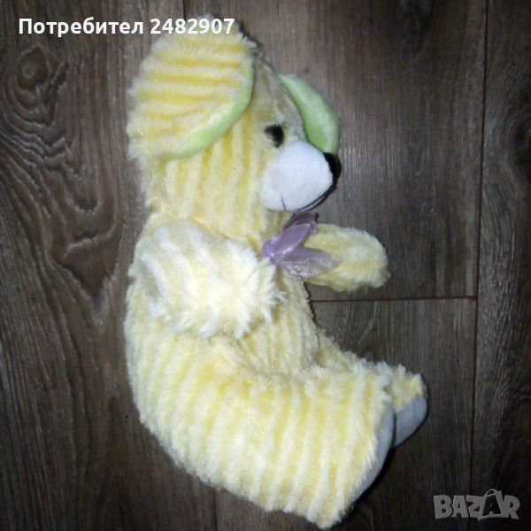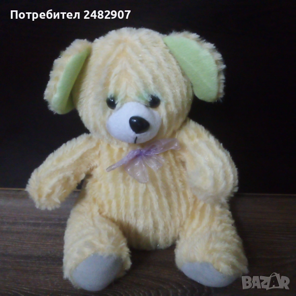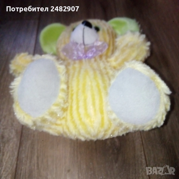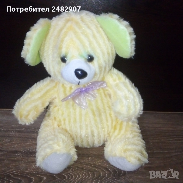 Плюшена играчка - сладко средно голямо меко меченце в лимоново жълт цвят. Размери - около 15/20 см, височина - около 24 см. Много запазено, почти не е използвано, без забележки, неразличимо от ново.