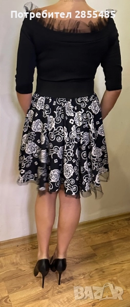 Рокля черна с бели цветя и тюл → Обява 52015927