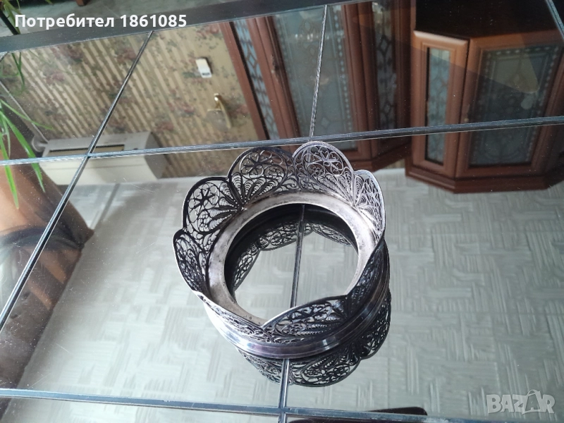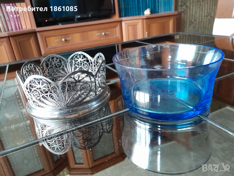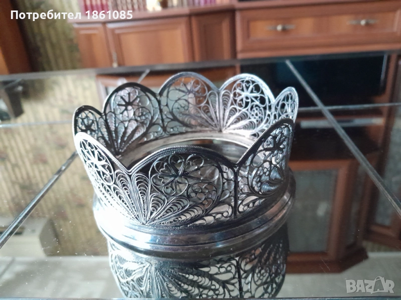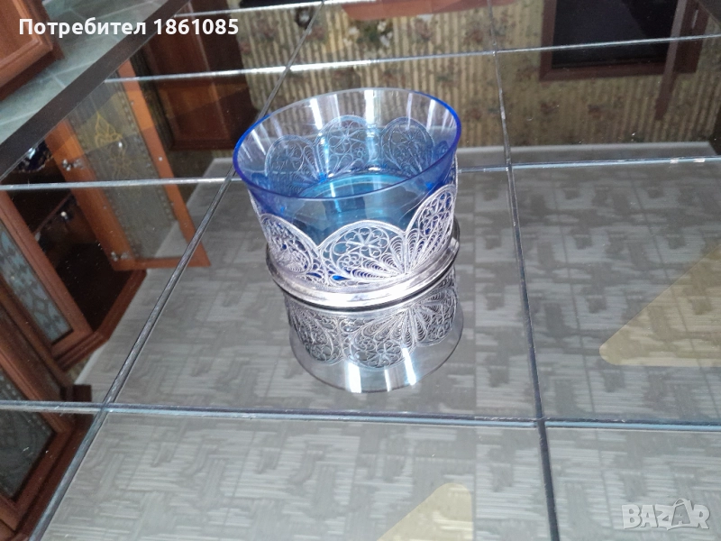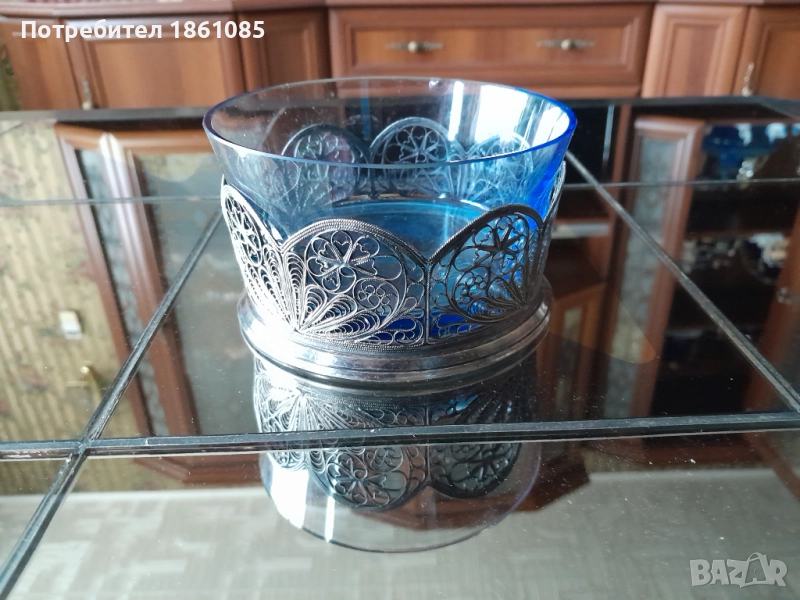 Филигран от мелхиор със сребрено покритие и цветно стъкло. Мстерски художествен завод "Ювелир" 1976 г.