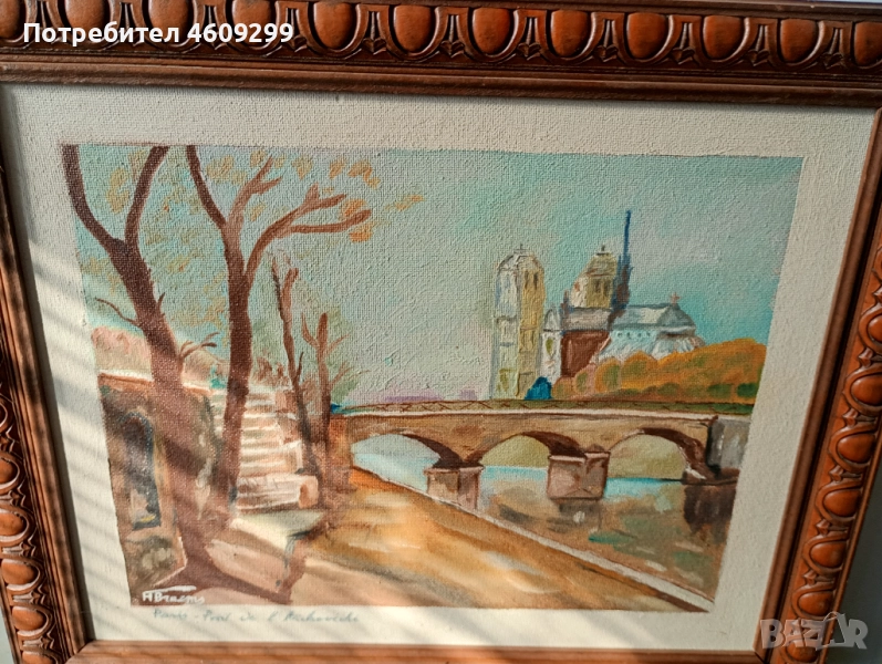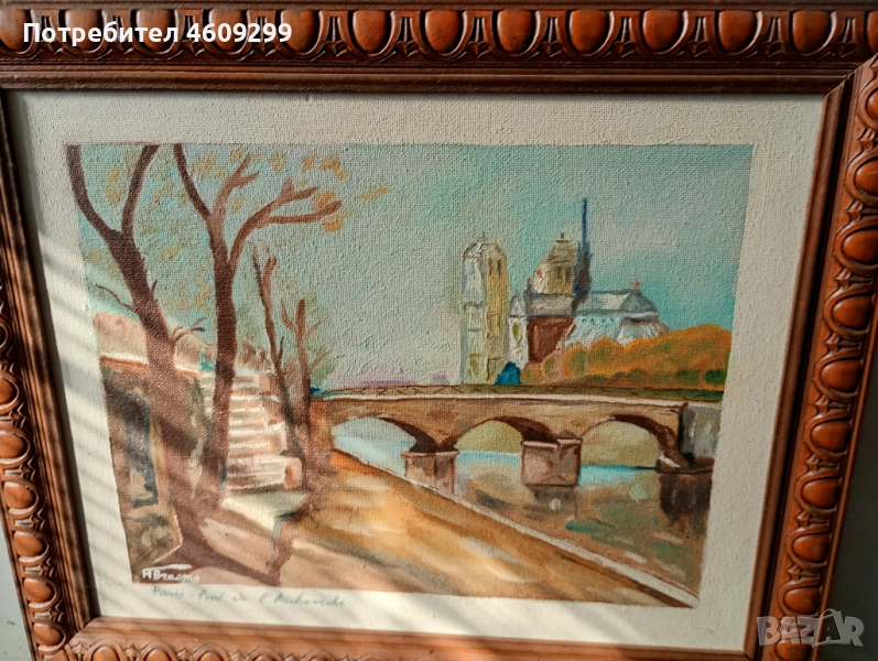 Красива картина Париж.Рамка дърворезба.Подписана.