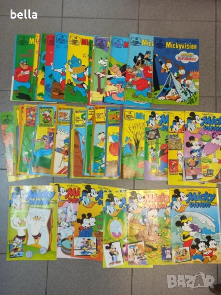 Колекционерски списания комикси на Дисни Мики Маус -MICKY VISION общо са 44 броя ,годините са 1975,76,77,78,1987,88,89 на немски език.Продава се цялата колекция-150 лв