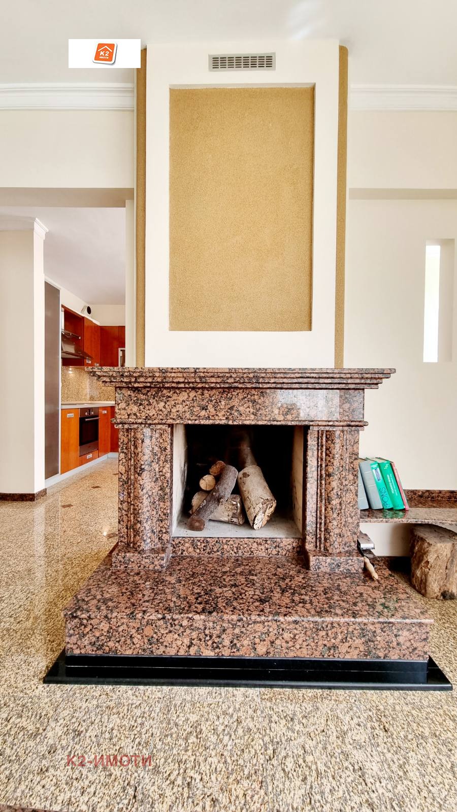 - всекидневна (около 70 кв.м.) с кухня и трапезария с камина от гранит , която е с гледка към двора и е с изложение юг и изток;