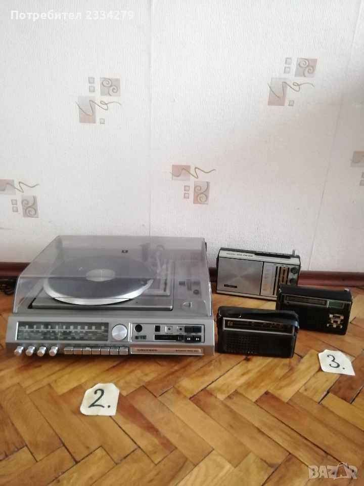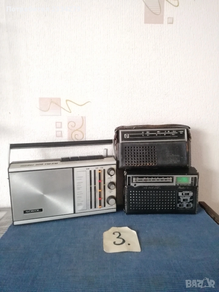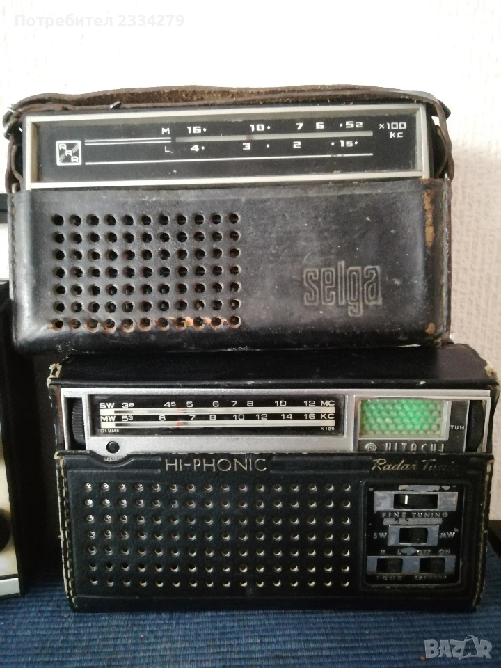 N:1ролкови магнетофон марка ,,UNITRA ZK 140" made in Poland, 4-ри пистов (нещо писка и влачи, може би смяна на ремъци), цена 15€.; N:2 винтидж компактна стерео система ,,GRUNDIG Studio RPC 50" производство 1974год., радио, грамофон, касетофон стереоуредба 2х50вата, цена като на неработещ 35€. ( радио работи, грамофона няма иглика, касетофона може би смяна на ремъци, механиката работи); N:3 ретро транзисторен радиоприемник ,,SOKOL 308" произведен в СССР 70-те години, цена 5€.; N:3 транзистор но радио ,,HITACHI-Hi Phonic" с функция ,,Radar Tuning" 1965год. Япония, цена 7€.; N:3 радио приемник съветски модел ,,Selga 402" произвеждан радио завод ,,ПОПОВ" Рига, цена 7€.