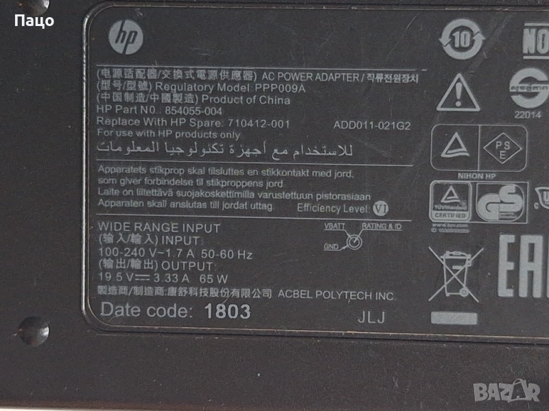 HP PPP009A 19.5V 3.33A → Обява 52017729