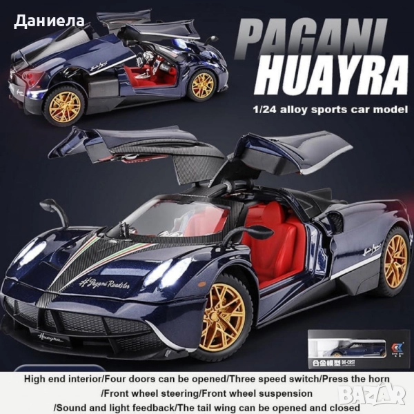 Метална количка Pagani с пушек, звук и светлина → Обява 52017752