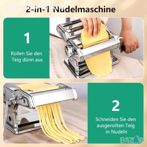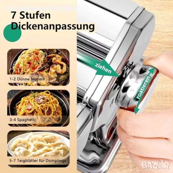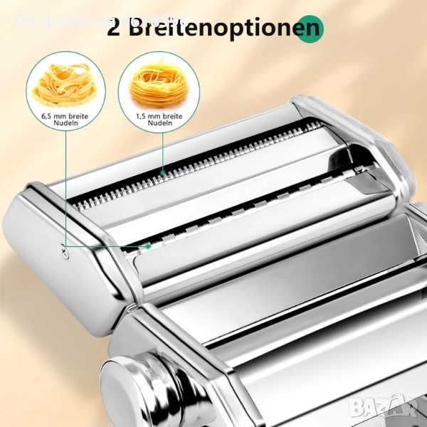 Прецизна ръчна машина за прясна домашна паста YASHE QF‑150, изработена изцяло от неръждаема стомана. Позволява ви да разточвате тестото на 6 нива дебелина и да правите два вида срез: спагети и талиатели (фетучини). Всеки комплект включва: Основен валяк за разточване на тестото (ширина 150 мм) Приставка за спагети (2 мм) Приставка за талиатели (6 мм) Универсална скоба за захващане към плот Четка за почистване и мерителна чашка Лесна смяна на приставките – просто издърпайте и поставете новата ролка. Дебелината на пастата се регулира чрез завъртане на копчето отстрани (6 позиции). Машината е стабилна благодарение на плътно прилепващата скоба и теглото си (~2.3 кг).
