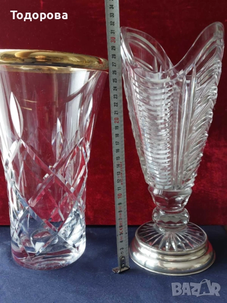 Авторски Кристални вази и кана със сребърен обков,среро 900/чаша,кана/ → Обява 52017802